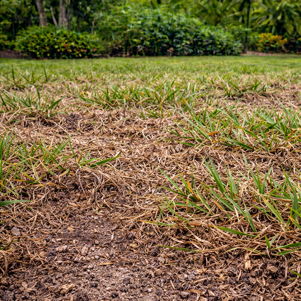 Excess thatch can block water and nutrients from reaching the soil, preventing healthy growth.